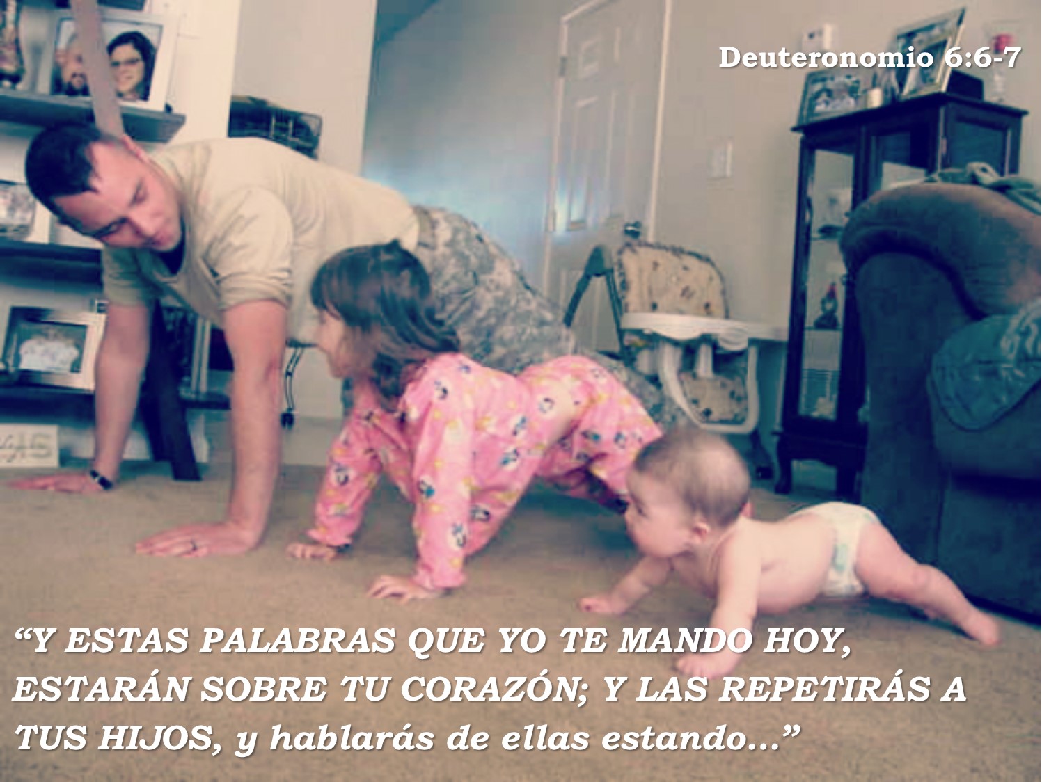 Moisés, estando frente a la congregación de Israel, motiva a los padres a enseñar a sus hijos sobre la Palabra de Dios. Les compromete a pasar todo el tiempo que fuera posible junto a sus hijos enseñando aquellas verdades eternas, les dice que esta enseñanza debe ser ya sea en casa o fuera de ella, al levantarse y al acostarse; es decir, en todo el tiempo (“…hablarás de ellas estando en tu casa, y andando por el camino, y al acostarte, y cuando te levantes…” Deuteronomio 6:7).