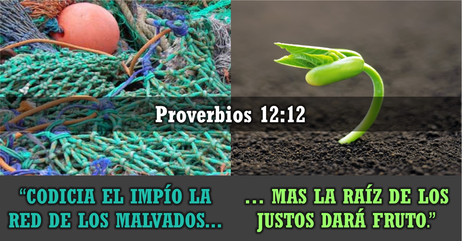 CODICIA EL IMPÍO LA RED DE LOS MALVADOS; MAS LA RAÍZ DE LOS JUSTOS DARÁ FRUTO.”