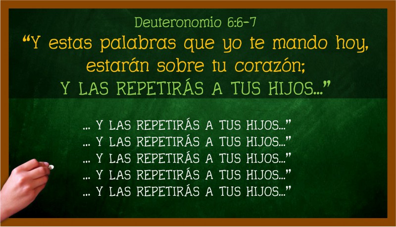 “Oye, Israel: Jehová nuestro Dios, Jehová uno es. Y AMARÁS A JEHOVÁ TU DIOS DE TODO TU CORAZÓN, Y DE TODA TU ALMA, Y CON TODAS TUS FUERZAS. Y estas palabras que yo te mando hoy, estarán sobre tu corazón; Y LAS REPETIRÁS A TUS HIJOS, y hablarás de ellas estando en tu casa, y andando por el camino, y al acostarte, y cuando te levantes.”