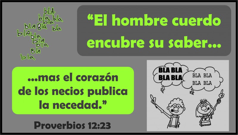 Una persona sabia no es una persona que habla mucho, al contrario, estudia el caso, analiza, calcula, piensa que decir, y si considera que es conveniente decir algo lo dice; sabiamente guarda silencio cuando se encuentra ante un necio que no va a apreciar lo que tenga que decir: “El hombre cuerdo ENCUBRE SU SABER…”.