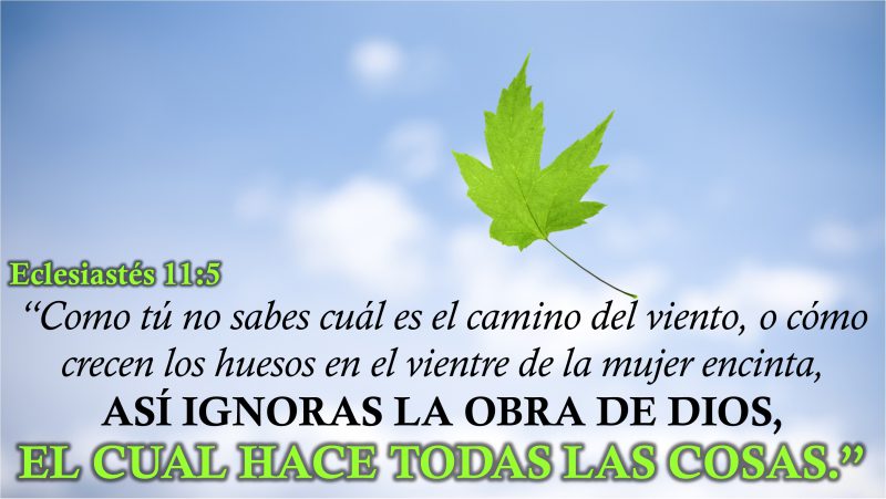 “Como tú no sabes cuál es el camino del viento, o cómo crecen los huesos en el vientre de la mujer encinta, ASÍ IGNORAS LA OBRA DE DIOS, EL CUAL HACE TODAS LAS COSAS.”