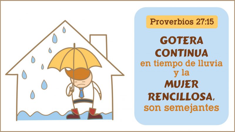 En forma general, y por naturaleza, la mujer es más propensa a las peleas en comparación con el hombre, aunque el hombre no está exento de este mal. Imagine si esta naturaleza rencillosa es como la gotera en tiempo de lluvia, cuánto daño puede ocasionar en las vidas de quienes rodean esta actitud destructiva; puede provocar mucho encono que merma o destruye las relaciones en la pareja y en la familia.
