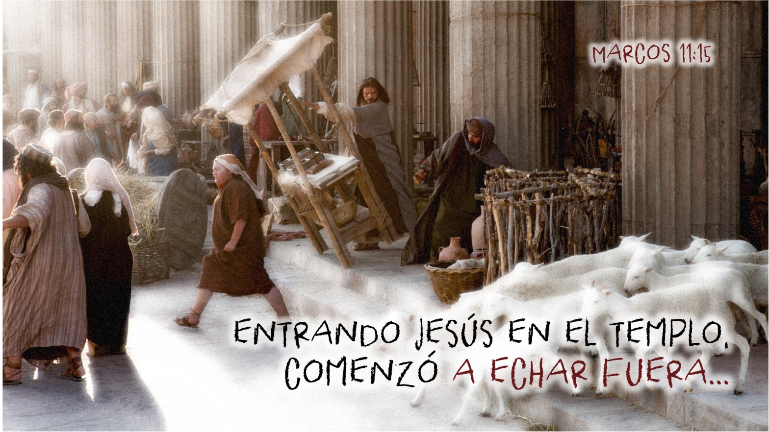 “Vinieron, pues, a Jerusalén; y entrando Jesús en el templo, comenzó a echar fuera a los que vendían y compraban en el templo; y volcó las mesas de los cambistas, y las sillas de los que vendían palomas; y no consentía que nadie atravesase el templo llevando utensilio alguno. Y les enseñaba, diciendo: ¿No está escrito: Mi casa será llamada casa de oración para todas las naciones? Mas vosotros la habéis hecho cueva de ladrones.”