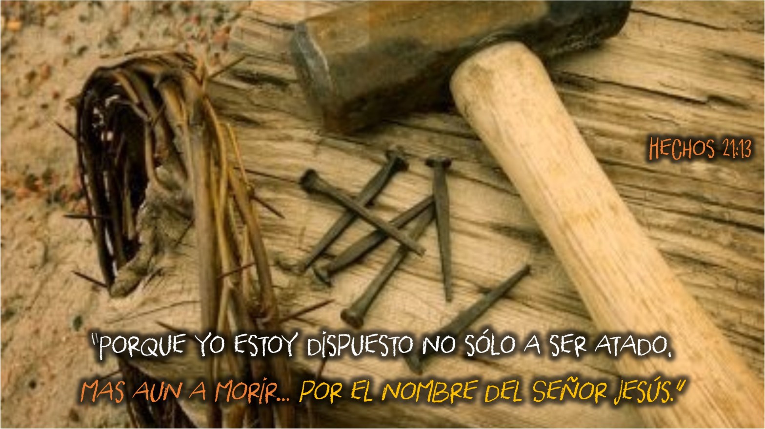 “Y permaneciendo nosotros allí algunos días, descendió de Judea un profeta llamado Agabo, quien viniendo a vernos, tomó el cinto de Pablo, y atándose los pies y las manos, dijo: Esto dice el Espíritu Santo: Así atarán los judíos en Jerusalén al varón de quien es este cinto, y le entregarán en manos de los gentiles. Al oír esto, le rogamos nosotros y los de aquel lugar, que no subiese a Jerusalén. Entonces Pablo respondió: ¿Qué hacéis llorando y quebrantándome el corazón? Porque yo estoy dispuesto no sólo a ser atado, mas aun a morir en Jerusalén por el nombre del Señor Jesús.”