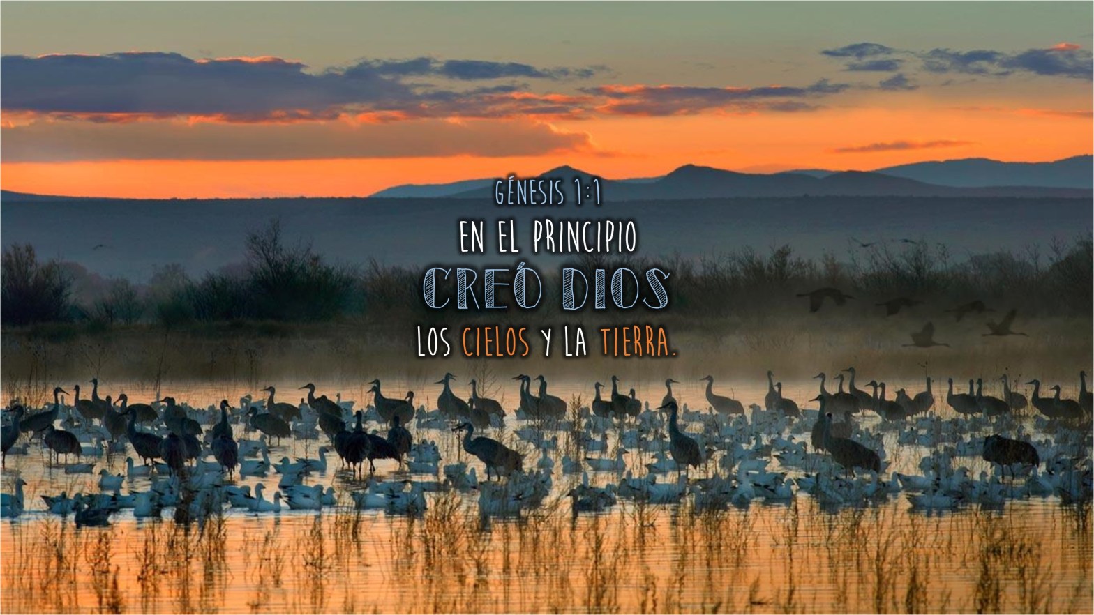“En el principio creó Dios los cielos y la tierra. […] Dijo también Dios: Júntense las aguas que están debajo de los cielos en un lugar, y descúbrase lo seco. Y fue así. Y llamó Dios a lo seco Tierra, y a la reunión de las aguas llamó Mares. Y vio Dios que era bueno. Después dijo Dios: Produzca la tierra hierba verde, hierba que dé semilla; árbol de fruto que dé fruto según su género, que su semilla esté en él, sobre la tierra. Y fue así. […] Y fue la tarde y la mañana el día tercero. […] Luego dijo Dios: Produzca la tierra seres vivientes según su género, bestias y serpientes y animales de la tierra según su especie. Y fue así. […] Y vio Dios todo lo que había hecho, y he aquí que era bueno en gran manera. Y fue la tarde y la mañana el día sexto.”