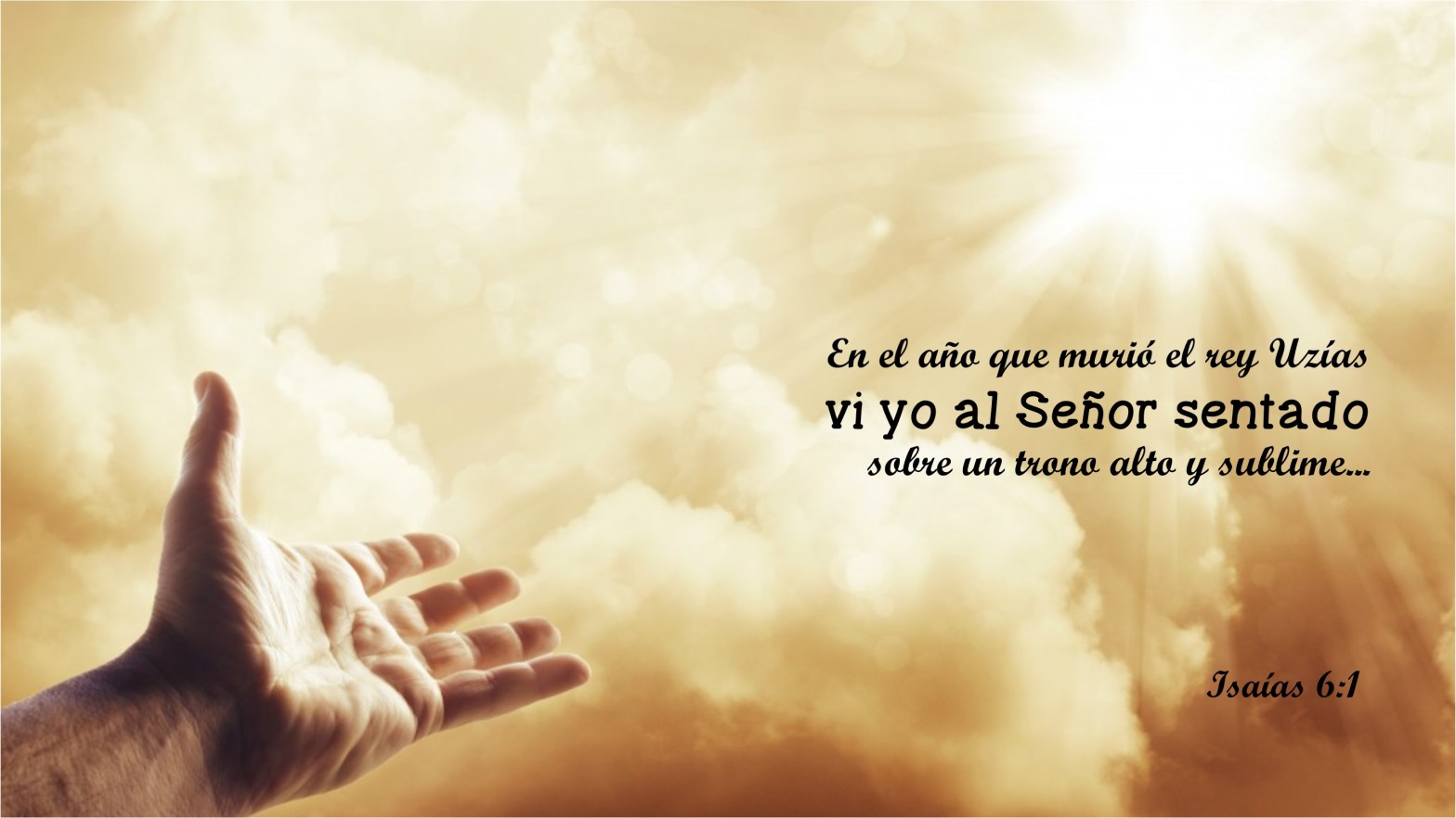 “En el año que murió el rey Uzías vi yo al Señor sentado sobre un trono alto y sublime, y sus faldas llenaban el templo. Por encima de él había serafines; cada uno tenía seis alas; con dos cubrían sus rostros, con dos cubrían sus pies, y con dos volaban. Y el uno al otro daba voces, diciendo: Santo, santo, santo, Jehová de los ejércitos; toda la tierra está llena de su gloria. Y los quiciales de las puertas se estremecieron con la voz del que clamaba, y la casa se llenó de humo. Entonces dije: ¡Ay de mí! que soy muerto; porque siendo hombre inmundo de labios, y habitando en medio de pueblo que tiene labios inmundos, han visto mis ojos al Rey, Jehová de los ejércitos. Y voló hacia mí uno de los serafines, teniendo en su mano un carbón encendido, tomado del altar con unas tenazas; y tocando con él sobre mi boca, dijo: He aquí que esto tocó tus labios, y es quitada tu culpa, y limpio tu pecado. Después oí la voz del Señor, que decía: ¿A quién enviaré, y quién irá por nosotros? Entonces respondí yo: Heme aquí, envíame a mí.”