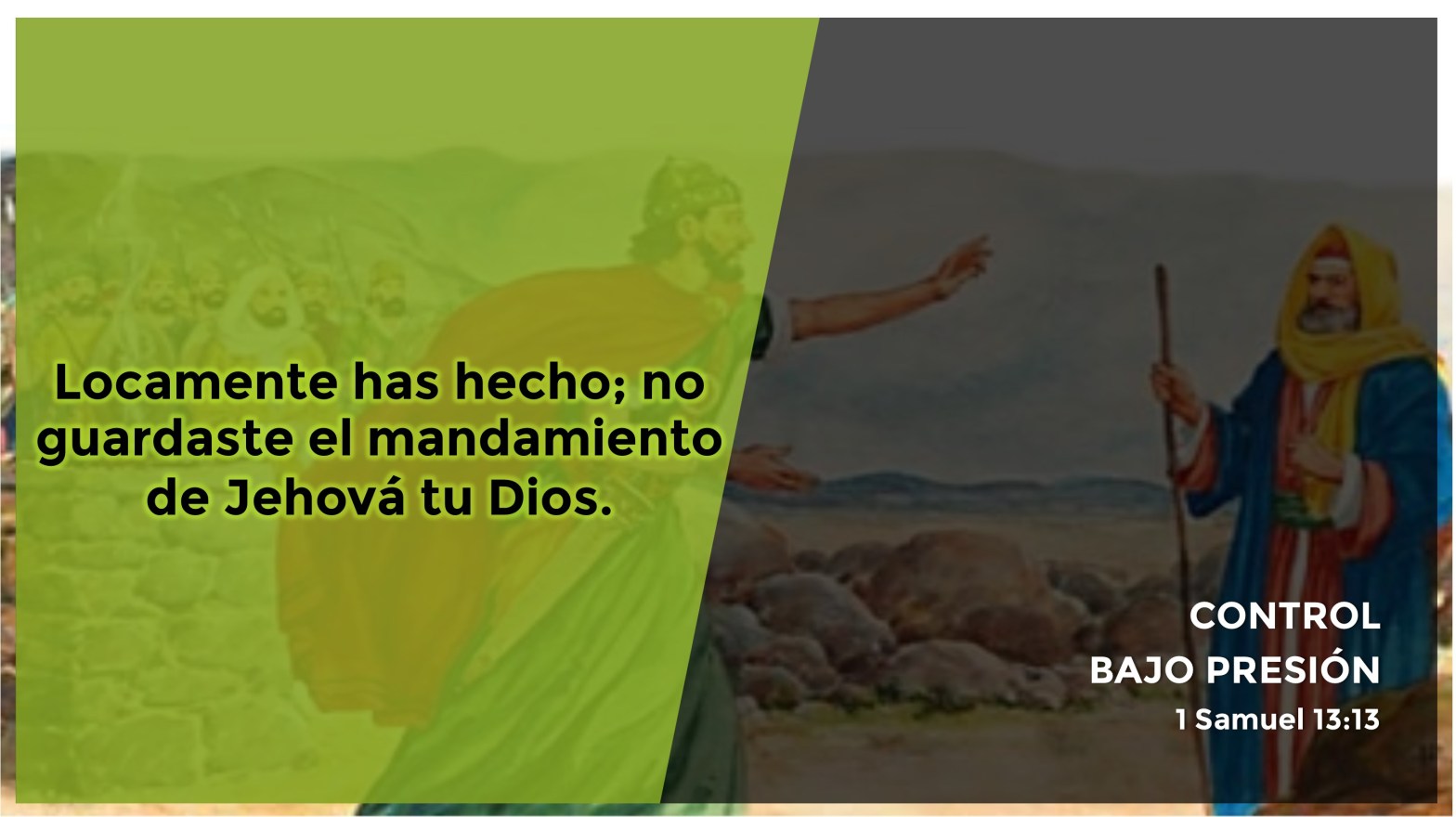 “Y él esperó siete días, conforme al plazo que Samuel había dicho; pero Samuel no venía a Gilgal, y el pueblo se le desertaba. Entonces dijo Saúl: Traedme holocausto y ofrendas de paz. Y ofreció el holocausto. Y cuando él acababa de ofrecer el holocausto, he aquí Samuel que venía; y Saúl salió a recibirle, para saludarle. Entonces Samuel dijo: ¿Qué has hecho? Y Saúl respondió: Porque vi que el pueblo se me desertaba, y que tú no venías dentro del plazo señalado, y que los filisteos estaban reunidos en Micmas, me dije: Ahora descenderán los filisteos contra mí a Gilgal, y yo no he implorado el favor de Jehová. Me esforcé, pues, y ofrecí holocausto. Entonces Samuel dijo a Saúl: Locamente has hecho; no guardaste el mandamiento de Jehová tu Dios que él te había ordenado; pues ahora Jehová hubiera confirmado tu reino sobre Israel para siempre.”