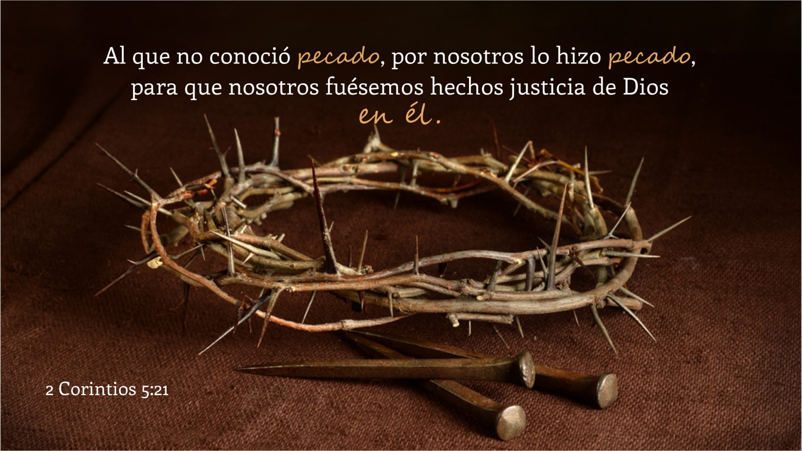 “Y todo esto proviene de Dios, quien nos reconcilió consigo mismo por Cristo, y nos dio el ministerio de la reconciliación; que Dios estaba en Cristo reconciliando consigo al mundo, no tomándoles en cuenta a los hombres sus pecados, y nos encargó a nosotros la palabra de la reconciliación. Así que, somos embajadores en nombre de Cristo, como si Dios rogase por medio de nosotros; os rogamos en nombre de Cristo: Reconciliaos con Dios. Al que no conoció pecado, por nosotros lo hizo pecado, para que nosotros fuésemos hechos justicia de Dios en él.”