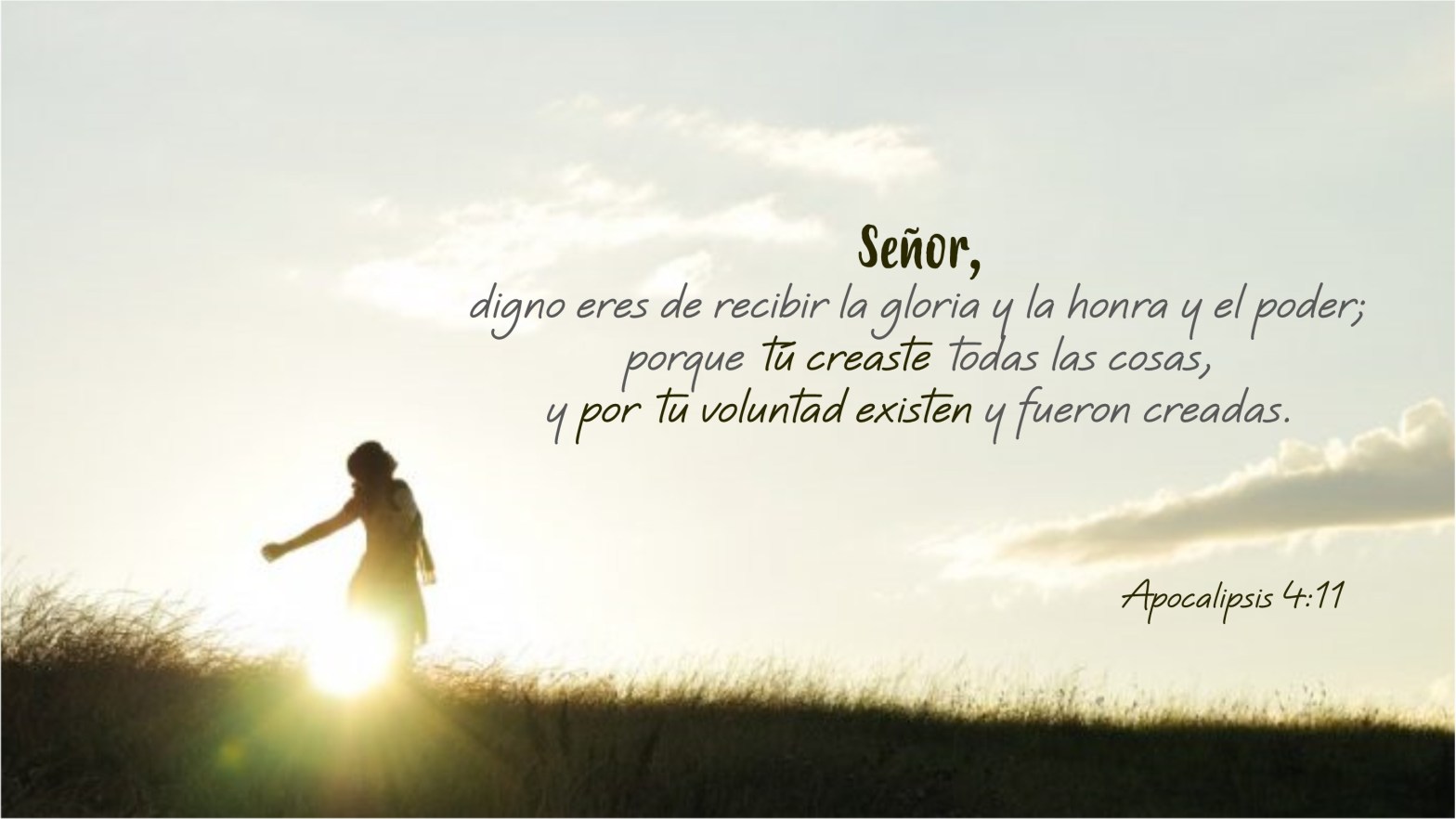 Honremos al Creador con nuestras vidas y vivamos agradecidos porque en Su voluntad nos creó. No esperemos hasta llegar al cielo para adorarlo por Su poder y voluntad de crearnos, podemos hacerlo desde ahora, y cada día, hasta que estemos ante Su trono.