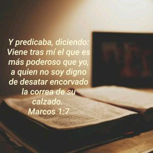 “Principio del evangelio de Jesucristo, Hijo de Dios. 2 Como está escrito en Isaías el profeta: He aquí yo envío mi mensajero delante de tu faz, El cual preparará tu camino delante de ti. 3 Voz del que clama en el desierto: Preparad el camino del Señor; Enderezad sus sendas. 4 Bautizaba Juan en el desierto, y predicaba el bautismo de arrepentimiento para perdón de pecados. 5 Y salían a él toda la provincia de Judea, y todos los de Jerusalén; y eran bautizados por él en el río Jordán, confesando sus pecados. 6 Y Juan estaba vestido de pelo de camello, y tenía un cinto de cuero alrededor de sus lomos; y comía langostas y miel silvestre. 7 Y predicaba, diciendo: Viene tras mí el que es más poderoso que yo, a quien no soy digno de desatar encorvado la correa de su calzado. 8 Yo a la verdad os he bautizado con agua; pero él os bautizará con Espíritu Santo.