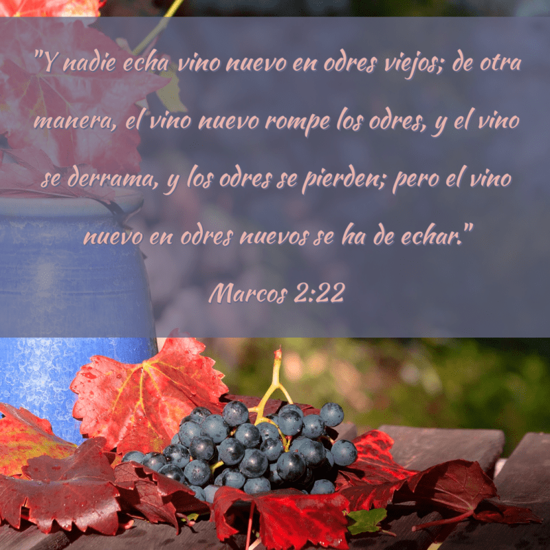 “Y los discípulos de Juan y los de los fariseos ayunaban; y vinieron, y le dijeron: ¿Por qué los discípulos de Juan y los de los fariseos ayunan, y tus discípulos no ayunan? Jesús les dijo: ¿Acaso pueden los que están de bodas ayunar mientras está con ellos el esposo? Entre tanto que tienen consigo al esposo, no pueden ayunar. Pero vendrán días cuando el esposo les será quitado, y entonces en aquellos días ayunarán. Nadie pone remiendo de paño nuevo en vestido viejo; de otra manera, el mismo remiendo nuevo tira de lo viejo, y se hace peor la rotura. Y nadie echa vino nuevo en odres viejos; de otra manera, el vino nuevo rompe los odres, y el vino se derrama, y los odres se pierden; pero el vino nuevo en odres nuevos se ha de echar.”
