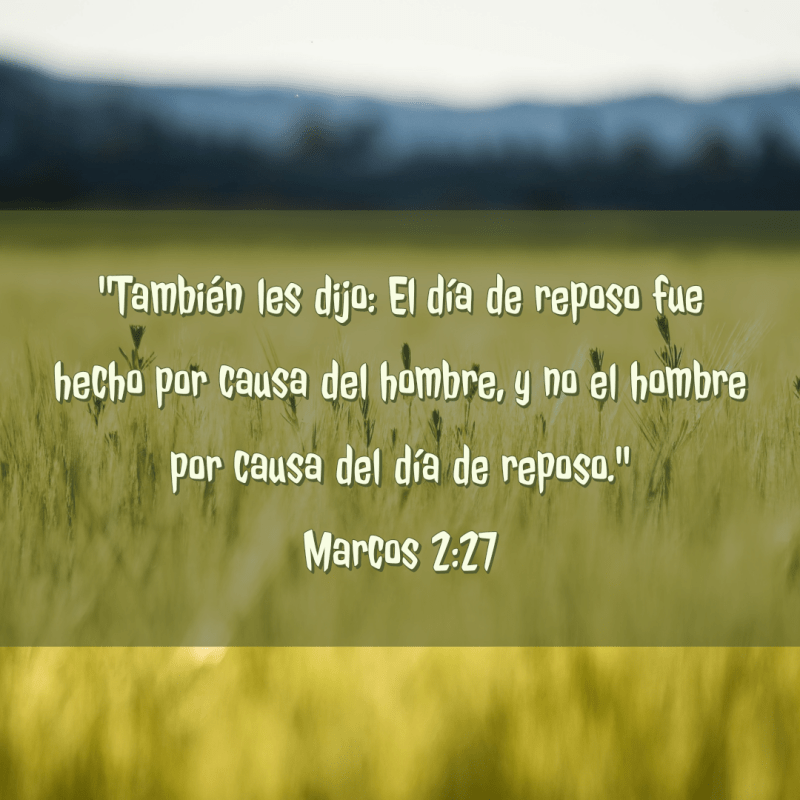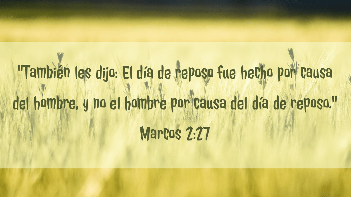 “Aconteció que al pasar él por los sembrados un día de reposo, sus discípulos, andando, comenzaron a arrancar espigas. Entonces los fariseos le dijeron: Mira, ¿por qué hacen en el día de reposo lo que no es lícito? Pero él les dijo: ¿Nunca leísteis lo que hizo David cuando tuvo necesidad, y sintió hambre, él y los que con él estaban; cómo entró en la casa de Dios, siendo Abiatar sumo sacerdote, y comió los panes de la proposición, de los cuales no es lícito comer sino a los sacerdotes, y aun dio a los que con él estaban? También les dijo: El día de reposo fue hecho por causa del hombre, y no el hombre por causa del día de reposo. Por tanto, el Hijo del Hombre es Señor aun del día de reposo.”