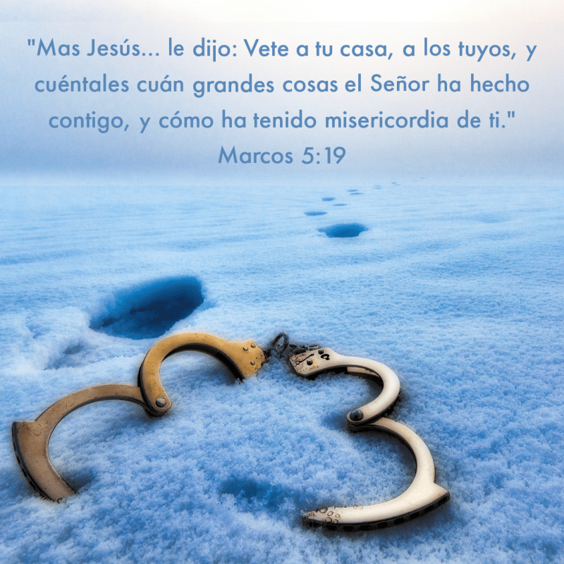“Vinieron al otro lado del mar, a la región de los gadarenos. Y cuando salió él de la barca, en seguida vino a su encuentro, de los sepulcros, un hombre con un espíritu inmundo, que tenía su morada en los sepulcros, y nadie podía atarle, ni aun con cadenas. Porque muchas veces había sido atado con grillos y cadenas, mas las cadenas habían sido hechas pedazos por él, y desmenuzados los grillos; y nadie le podía dominar. Y siempre, de día y de noche, andaba dando voces en los montes y en los sepulcros, e hiriéndose con piedras… Vienen a Jesús, y ven al que había sido atormentado del demonio, y que había tenido la legión, sentado, vestido y en su juicio cabal; y tuvieron miedo. Y les contaron los que lo habían visto, cómo le había acontecido al que había tenido el demonio, y lo de los cerdos. Y comenzaron a rogarle que se fuera de sus contornos. Al entrar él en la barca, el que había estado endemoniado le rogaba que le dejase estar con él. Mas Jesús no se lo permitió, sino que le dijo: Vete a tu casa, a los tuyos, y cuéntales cuán grandes cosas el Señor ha hecho contigo, y cómo ha tenido misericordia de ti. Y se fue, y comenzó a publicar en Decápolis cuán grandes cosas había hecho Jesús con él; y todos se maravillaban.”