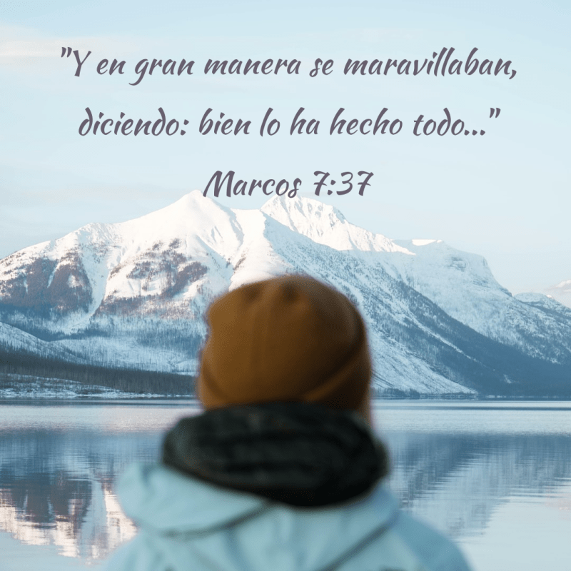 “Volviendo a salir de la región de Tiro, vino por Sidón al mar de Galilea, pasando por la región de Decápolis. Y le trajeron un sordo y tartamudo, y le rogaron que le pusiera la mano encima. Y tomándole aparte de la gente, metió los dedos en las orejas de él, y escupiendo, tocó su lengua; y levantando los ojos al cielo, gimió, y le dijo: Efata, es decir: Sé abierto. Al momento fueron abiertos sus oídos, y se desató la ligadura de su lengua, y hablaba bien. Y les mandó que no lo dijesen a nadie; pero cuanto más les mandaba, tanto más y más lo divulgaban. Y en gran manera se maravillaban, diciendo: bien lo ha hecho todo; hace a los sordos oír, y a los mudos hablar.”