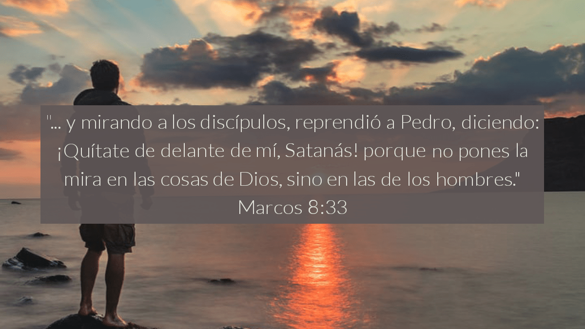 “Y comenzó a enseñarles que le era necesario al Hijo del Hombre padecer mucho, y ser desechado por los ancianos, por los principales sacerdotes y por los escribas, y ser muerto, y resucitar después de tres días. Esto les decía claramente. Entonces Pedro le tomó aparte y comenzó a reconvenirle. Pero él, volviéndose y mirando a los discípulos, reprendió a Pedro, diciendo: ¡Quítate de delante de mí, Satanás! porque no pones la mira en las cosas de Dios, sino en las de los hombres.”