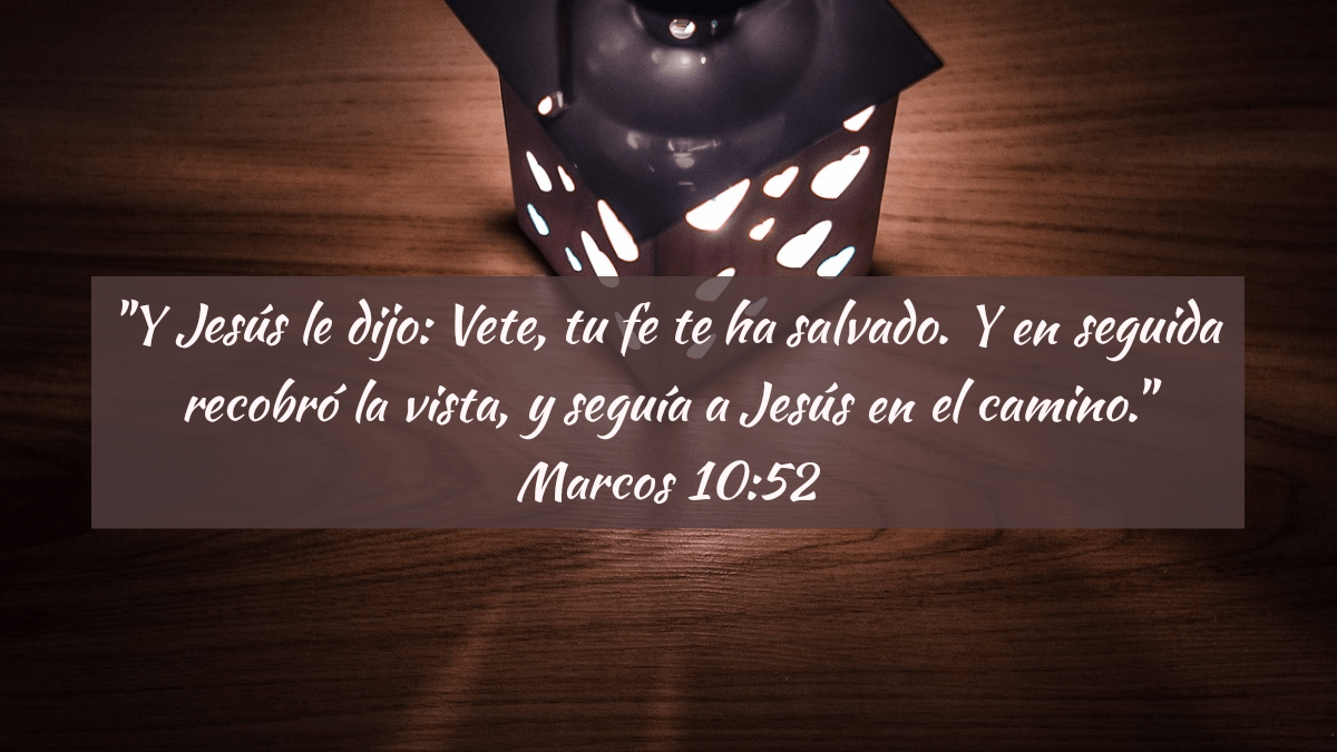 “Entonces vinieron a Jericó; y al salir de Jericó él y sus discípulos y una gran multitud, Bartimeo el ciego, hijo de Timeo, estaba sentado junto al camino mendigando. Y oyendo que era Jesús nazareno, comenzó a dar voces y a decir: ¡Jesús, Hijo de David, ten misericordia de mí! Y muchos le reprendían para que callase, pero él clamaba mucho más: ¡Hijo de David, ten misericordia de mí! Entonces Jesús, deteniéndose, mandó llamarle; y llamaron al ciego, diciéndole: Ten confianza; levántate, te llama. El entonces, arrojando su capa, se levantó y vino a Jesús. Respondiendo Jesús, le dijo: ¿Qué quieres que te haga? Y el ciego le dijo: Maestro, que recobre la vista. Y Jesús le dijo: Vete, tu fe te ha salvado. Y en seguida recobró la vista, y seguía a Jesús en el camino.”