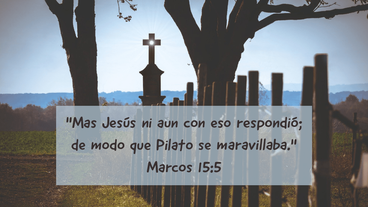 “Muy de mañana, habiendo tenido consejo los principales sacerdotes con los ancianos, con los escribas y con todo el concilio, llevaron a Jesús atado, y le entregaron a Pilato. Pilato le preguntó: ¿Eres tú el Rey de los judíos? Respondiendo él, le dijo: Tú lo dices. Y los principales sacerdotes le acusaban mucho. Otra vez le preguntó Pilato, diciendo: ¿Nada respondes? Mira de cuántas cosas te acusan. Mas Jesús ni aun con eso respondió; de modo que Pilato se maravillaba.”