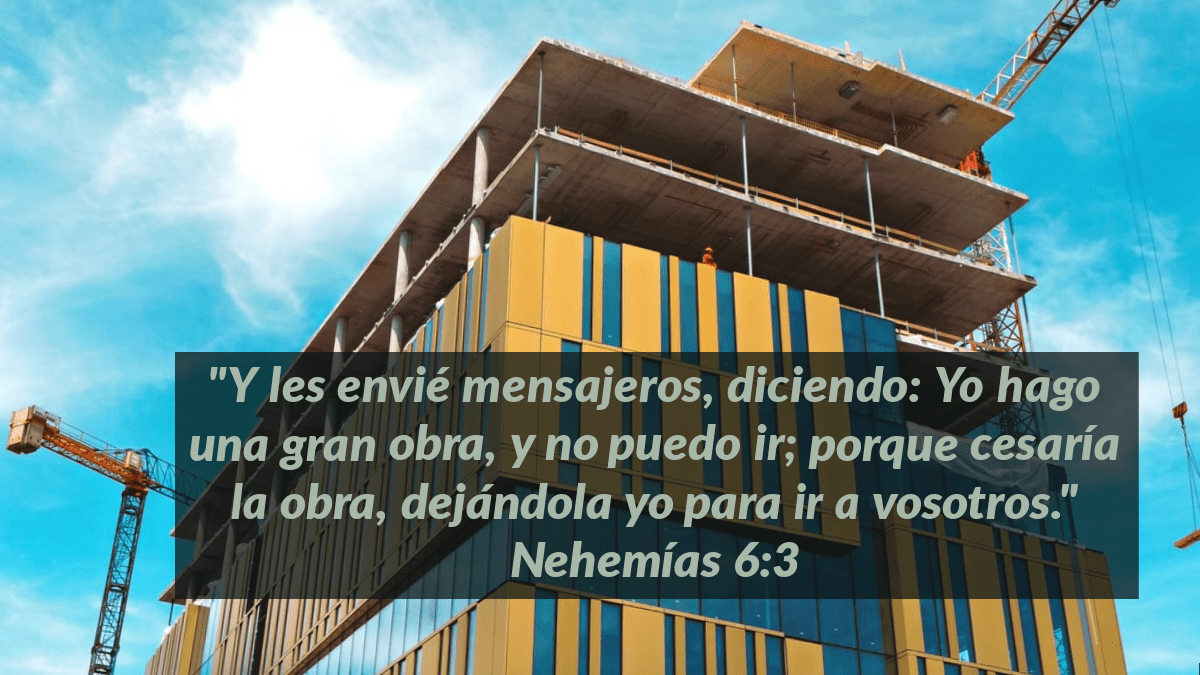 “Cuando oyeron Sanbalat y Tobías y Gesem el árabe, y los demás de nuestros enemigos, que yo había edificado el muro, y que no quedaba en él portillo (aunque hasta aquel tiempo no había puesto las hojas en las puertas), Sanbalat y Gesem enviaron a decirme: Ven y reunámonos en alguna de las aldeas en el campo de Ono. Mas ellos habían pensado hacerme mal. Y les envié mensajeros, diciendo: Yo hago una gran obra, y no puedo ir; porque cesaría la obra, dejándola yo para ir a vosotros. Y enviaron a mí con el mismo asunto hasta cuatro veces, y yo les respondí de la misma manera. Entonces Sanbalat envió a mí su criado para decir lo mismo por quinta vez, con una carta abierta en su mano, en la cual estaba escrito: Se ha oído entre las naciones, y Gasmu lo dice, que tú y los judíos pensáis rebelaros; y que por eso edificas tú el muro, con la mira, según estas palabras, de ser tú su rey; y que has puesto profetas que proclamen acerca de ti en Jerusalén, diciendo: ¡Hay rey en Judá! Y ahora serán oídas del rey las tales palabras; ven, por tanto, y consultemos juntos. Entonces envié yo a decirle: No hay tal cosa como dices, sino que de tu corazón tú lo inventas. Porque todos ellos nos amedrentaban, diciendo: Se debilitarán las manos de ellos en la obra, y no será terminada. Ahora, pues, oh Dios, fortalece tú mis manos.”