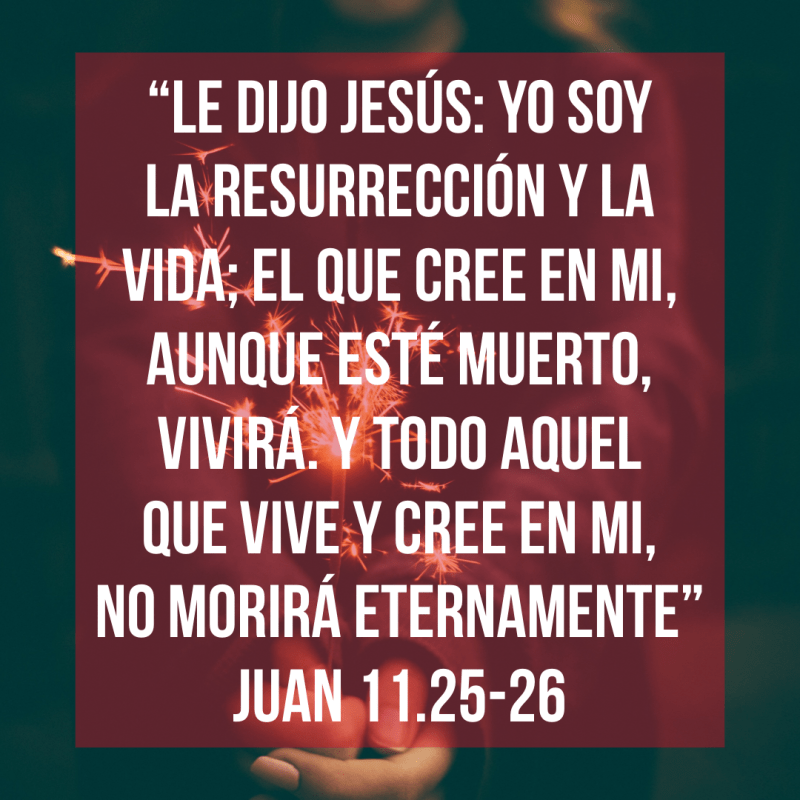 “Le dijo Jesús: Yo soy la resurrección y la vida; el que cree en mí, aunque esté muerto, vivirá. Y todo aquel que vive y cree en mí, no morirá eternamente. ¿Crees esto?”