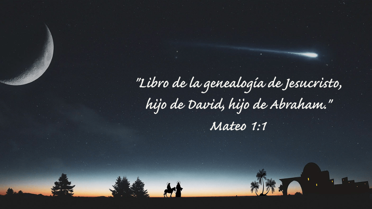 “Libro de la genealogía de Jesucristo, hijo de David, hijo de Abraham. Abraham engendró a Isaac, Isaac a Jacob, y Jacob a Judá y a sus hermanos. Judá engendró de Tamar a Fares y a Zara, Fares a Esrom, y Esrom a Aram. Aram engendró a Aminadab, Aminadab a Naasón, y Naasón a Salmón. Salmón engendró de Rahab a Booz, Booz engendró de Rut a Obed, y Obed a Isaí. Isaí engendró al rey David, y el rey David engendró a Salomón de la que fue mujer de Urías. Salomón engendró a Roboam, Roboam a Abías, y Abías a Asa. […] y Jacob engendró a José, marido de María, de la cual nació Jesús, llamado el Cristo. De manera que todas las generaciones desde Abraham hasta David son catorce; desde David hasta la deportación a Babilonia, catorce; y desde la deportación a Babilonia hasta Cristo, catorce.”