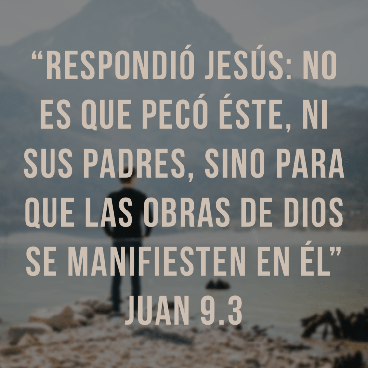 “Al pasar Jesús, vio a un hombre ciego de nacimiento. Y le preguntaron sus discípulos, diciendo: Rabí, ¿quién pecó, este o sus padres, para que haya nacido ciego? Respondió Jesús: No es que pecó este, ni sus padres, sino para que las obras de Dios se manifiesten en él.”