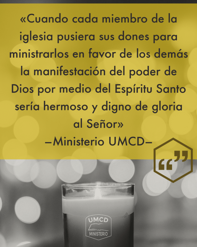 «Cuando cada miembro de la iglesia pusiera sus dones para ministrarlos en favor de los demás la manifestación del poder de Dios por medio del Espíritu Santo sería hermoso y digno de gloria al Señor»