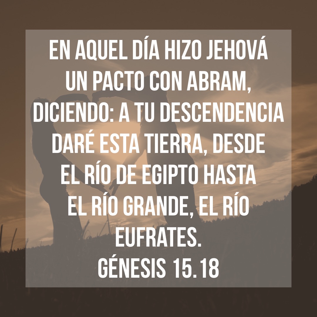 “Y sucedió que puesto el sol, y ya oscurecido, se veía un horno humeando, y una antorcha de fuego que pasaba por entre los animales divididos. En aquel día hizo Jehová un pacto con Abram, diciendo: A tu descendencia daré esta tierra, desde el río de Egipto hasta el río grande, el río Éufrates.”