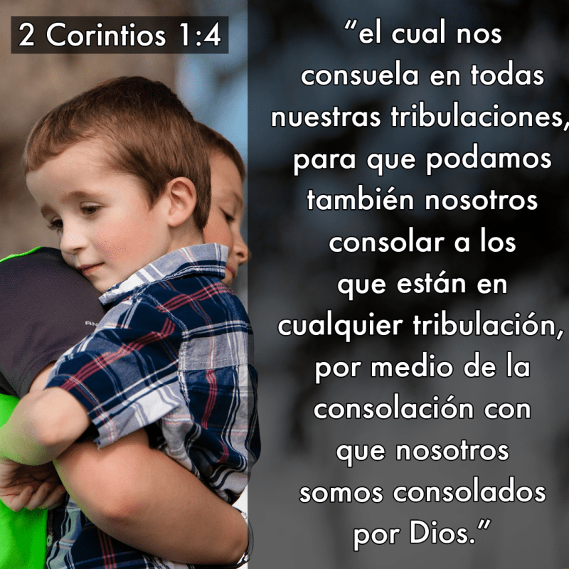 “Bendito sea el Dios y Padre de nuestro Señor Jesucristo, Padre de misericordias y Dios de toda consolación, el cual nos consuela en todas nuestras tribulaciones, para que podamos también nosotros consolar a los que están en cualquier tribulación, por medio de la consolación con que nosotros somos consolados por Dios. Porque de la manera que abundan en nosotros las aflicciones de Cristo, así abunda también por el mismo Cristo nuestra consolación. Pero si somos atribulados, es para vuestra consolación y salvación; o si somos consolados, es para vuestra consolación y salvación, la cual se opera en el sufrir las mismas aflicciones que nosotros también padecemos. Y nuestra esperanza respecto de vosotros es firme, pues sabemos que así como sois compañeros en las aflicciones, también lo sois en la consolación. Porque hermanos, no queremos que ignoréis acerca de nuestra tribulación que nos sobrevino en Asia; pues fuimos abrumados sobremanera más allá de nuestras fuerzas, de tal modo que aun perdimos la esperanza de conservar la vida. Pero tuvimos en nosotros mismos sentencia de muerte, para que no confiásemos en nosotros mismos, sino en Dios que resucita a los muertos; el cual nos libró, y nos libra, y en quien esperamos que aún nos librará, de tan gran muerte; cooperando también vosotros a favor nuestro con la oración, para que por muchas personas sean dadas gracias a favor nuestro por el don concedido a nosotros por medio de muchos.”