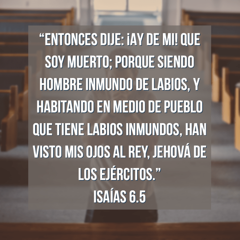 “Y los quiciales de las puertas se estremecieron con la voz del que clamaba, y la casa se llenó de humo. Entonces dije: ¡Ay de mí! que soy muerto; porque siendo hombre inmundo de labios, y habitando en medio de pueblo que tiene labios inmundos, han visto mis ojos al Rey, Jehová de los ejércitos.”