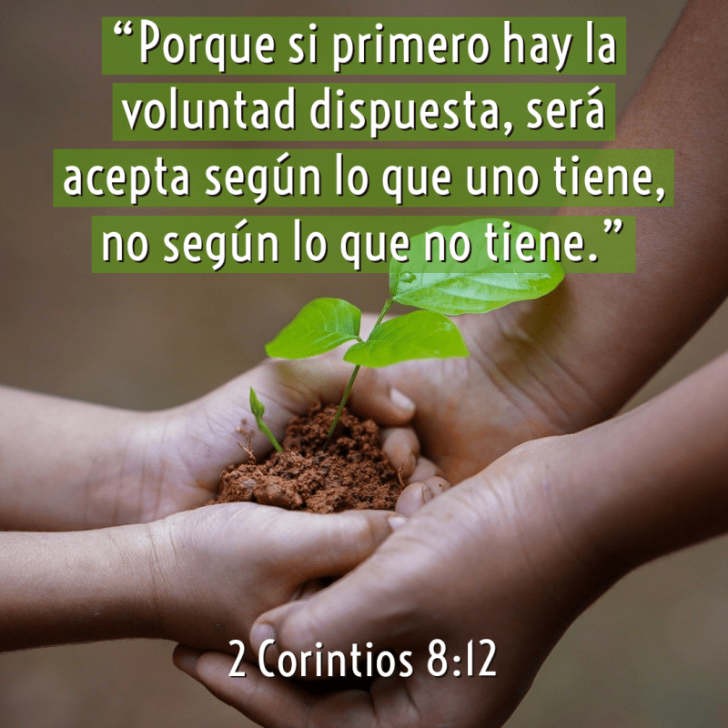 “Y en esto doy mi consejo; porque esto os conviene a vosotros, que comenzasteis antes, no sólo a hacerlo, sino también a quererlo, desde el año pasado. Ahora, pues, llevad también a cabo el hacerlo, para que como estuvisteis prontos a querer, así también lo estéis en cumplir conforme a lo que tengáis. Porque si primero hay la voluntad dispuesta, será acepta según lo que uno tiene, no según lo que no tiene. Porque no digo esto para que haya para otros holgura, y para vosotros estrechez, sino para que en este tiempo, con igualdad, la abundancia vuestra supla la escasez de ellos, para que también la abundancia de ellos supla la necesidad vuestra, para que haya igualdad, como está escrito: El que recogió mucho, no tuvo más, y el que poco, no tuvo menos.”