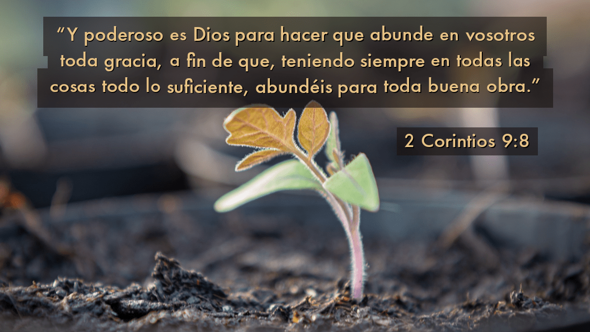 “Y poderoso es Dios para hacer que abunde en vosotros toda gracia, a fin de que, teniendo siempre en todas las cosas todo lo suficiente, abundéis para toda buena obra; como está escrito: Repartió, dio a los pobres; Su justicia permanece para siempre. Y el que da semilla al que siembra, y pan al que come, proveerá y multiplicará vuestra sementera, y aumentará los frutos de vuestra justicia, para que estéis enriquecidos en todo para toda liberalidad, la cual produce por medio de nosotros acción de gracias a Dios.”