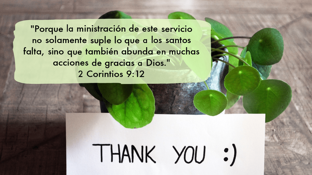 “Porque la ministración de este servicio no solamente suple lo que a los santos falta, sino que también abunda en muchas acciones de gracias a Dios; pues por la experiencia de esta ministración glorifican a Dios por la obediencia que profesáis al evangelio de Cristo, y por la liberalidad de vuestra contribución para ellos y para todos; asimismo en la oración de ellos por vosotros, a quienes aman a causa de la superabundante gracia de Dios en vosotros. ¡Gracias a Dios por su don inefable!”