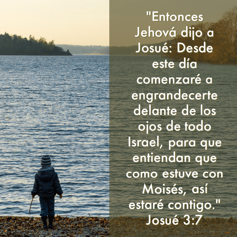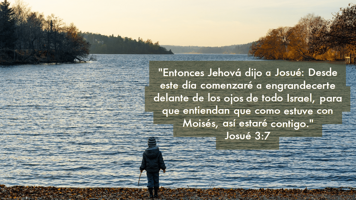 “Entonces Jehová dijo a Josué: Desde este día comenzaré a engrandecerte delante de los ojos de todo Israel, para que entiendan que como estuve con Moisés, así estaré contigo. Tú, pues, mandarás a los sacerdotes que llevan el arca del pacto, diciendo: Cuando hayáis entrado hasta el borde del agua del Jordán, pararéis en el Jordán. Y Josué dijo a los hijos de Israel: Acercaos, y escuchad las palabras de Jehová vuestro Dios. Y añadió Josué: En esto conoceréis que el Dios viviente está en medio de vosotros, y que él echará de delante de vosotros al cananeo, al heteo, al heveo, al ferezeo, al gergeseo, al amorreo y al jebuseo. He aquí, el arca del pacto del Señor de toda la tierra pasará delante de vosotros en medio del Jordán. Tomad, pues, ahora doce hombres de las tribus de Israel, uno de cada tribu. Y cuando las plantas de los pies de los sacerdotes que llevan el arca de Jehová, Señor de toda la tierra, se asienten en las aguas del Jordán, las aguas del Jordán se dividirán; porque las aguas que vienen de arriba se detendrán en un montón. Y aconteció cuando partió el pueblo de sus tiendas para pasar el Jordán, con los sacerdotes delante del pueblo llevando el arca del pacto, cuando los que llevaban el arca entraron en el Jordán, y los pies de los sacerdotes que llevaban el arca fueron mojados a la orilla del agua (porque el Jordán suele desbordarse por todas sus orillas todo el tiempo de la siega), las aguas que venían de arriba se detuvieron como en un montón bien lejos de la ciudad de Adam, que está al lado de Saretán, y las que descendían al mar del Arabá, al Mar Salado, se acabaron, y fueron divididas; y el pueblo pasó en dirección de Jericó. Mas los sacerdotes que llevaban el arca del pacto de Jehová, estuvieron en seco, firmes en medio del Jordán, hasta que todo el pueblo hubo acabado de pasar el Jordán; y todo Israel pasó en seco.”