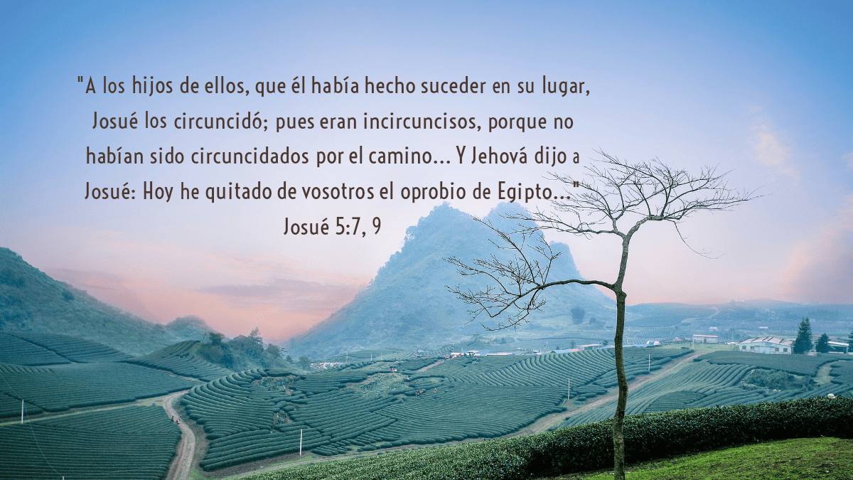 “En aquel tiempo Jehová dijo a Josué: Hazte cuchillos afilados, y vuelve a circuncidar la segunda vez a los hijos de Israel. Y Josué se hizo cuchillos afilados, y circuncidó a los hijos de Israel en el collado de Aralot. Esta es la causa por la cual Josué los circuncidó: Todo el pueblo que había salido de Egipto, los varones, todos los hombres de guerra, habían muerto en el desierto, por el camino, después que salieron de Egipto. Pues todos los del pueblo que habían salido, estaban circuncidados; mas todo el pueblo que había nacido en el desierto, por el camino, después que hubieron salido de Egipto, no estaba circuncidado. Porque los hijos de Israel anduvieron por el desierto cuarenta años, hasta que todos los hombres de guerra que habían salido de Egipto fueron consumidos, por cuanto no obedecieron a la voz de Jehová; por lo cual Jehová les juró que no les dejaría ver la tierra de la cual Jehová había jurado a sus padres que nos la daría, tierra que fluye leche y miel. A los hijos de ellos, que él había hecho suceder en su lugar, Josué los circuncidó; pues eran incircuncisos, porque no habían sido circuncidados por el camino. Y cuando acabaron de circuncidar a toda la gente, se quedaron en el mismo lugar en el campamento, hasta que sanaron. Y Jehová dijo a Josué: Hoy he quitado de vosotros el oprobio de Egipto; por lo cual el nombre de aquel lugar fue llamado Gilgal, hasta hoy.”