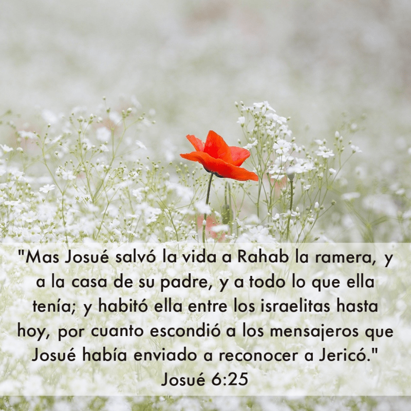 Rahab era una mujer pecadora, según nos dice la Biblia, ella había sido una mujer ramera y había mentido a los enviados del rey de Jericó (Jos. 2:1-7), pero fue su fe en Dios lo que le dio la valentía de actuar en favor de los espías. Ella sabía que no había esperanza para nadie que habitaba dentro de Jericó, pero confiando en la misericordia de Dios, y esperando que por gracia la salven, decide tomar la oportunidad de refugiarse ante el poder del Dios de Israel, y con ello, salvarse ella y su familia (Jos. 2:8-16).