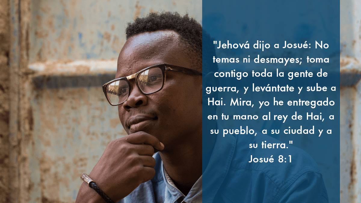 “Jehová dijo a Josué: No temas ni desmayes; toma contigo toda la gente de guerra, y levántate y sube a Hai. Mira, yo he entregado en tu mano al rey de Hai, a su pueblo, a su ciudad y a su tierra. Y harás a Hai y a su rey como hiciste a Jericó y a su rey; sólo que sus despojos y sus bestias tomaréis para vosotros. Pondrás, pues, emboscadas a la ciudad detrás de ella. Entonces se levantaron Josué y toda la gente de guerra, para subir contra Hai; y escogió Josué treinta mil hombres fuertes, los cuales envió de noche. Y les mandó, diciendo: Atended, pondréis emboscada a la ciudad detrás de ella; no os alejaréis mucho de la ciudad, y estaréis todos dispuestos. Y yo y todo el pueblo que está conmigo nos acercaremos a la ciudad; y cuando salgan ellos contra nosotros, como hicieron antes, huiremos delante de ellos. Y ellos saldrán tras nosotros, hasta que los alejemos de la ciudad; porque dirán: Huyen de nosotros como la primera vez. Huiremos, pues, delante de ellos. Entonces vosotros os levantaréis de la emboscada y tomaréis la ciudad; pues Jehová vuestro Dios la entregará en vuestras manos. Y cuando la hayáis tomado, le prenderéis fuego. Haréis conforme a la palabra de Jehová; mirad que os lo he mandado.”