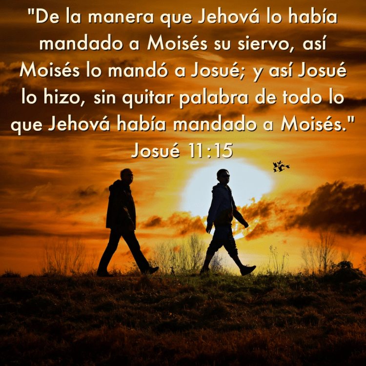 Lo que aprendemos del pasaje de Josué 11:12-15 no solo tiene que ver con la obediencia de Josué, sino del ejemplo que Moisés le dejó a su siervo durante esos años que Josué caminó bajo su liderazgo. Josué aprendió la obediencia del ejemplo que Moisés modeló al caminar con Dios (Dt. 34:10-12).