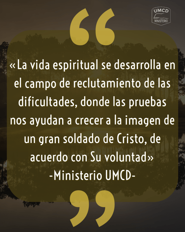 «La vida espiritual se desarrolla en el campo de reclutamiento de las dificultades, donde las pruebas nos ayudan a crecer a la imagen de un gran soldado de Cristo, de acuerdo con Su voluntad»