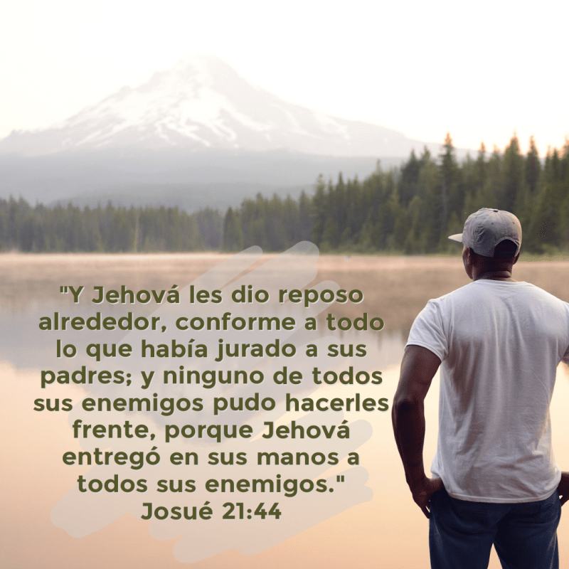 “De esta manera dio Jehová a Israel toda la tierra que había jurado dar a sus padres, y la poseyeron y habitaron en ella. Y Jehová les dio reposo alrededor, conforme a todo lo que había jurado a sus padres; y ninguno de todos sus enemigos pudo hacerles frente, porque Jehová entregó en sus manos a todos sus enemigos. No faltó palabra de todas las buenas promesas que Jehová había hecho a la casa de Israel; todo se cumplió.”