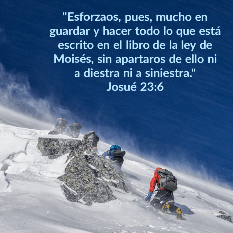 “Aconteció, muchos días después que Jehová diera reposo a Israel de todos sus enemigos alrededor, que Josué, siendo ya viejo y avanzado en años, llamó a todo Israel, a sus ancianos, sus príncipes, sus jueces y sus oficiales, y les dijo: Yo ya soy viejo y avanzado en años. Y vosotros habéis visto todo lo que Jehová vuestro Dios ha hecho con todas estas naciones por vuestra causa; porque Jehová vuestro Dios es quien ha peleado por vosotros. He aquí os he repartido por suerte, en herencia para vuestras tribus, estas naciones, así las destruidas como las que quedan, desde el Jordán hasta el Mar Grande, hacia donde se pone el sol. Y Jehová vuestro Dios las echará de delante de vosotros, y las arrojará de vuestra presencia; y vosotros poseeréis sus tierras, como Jehová vuestro Dios os ha dicho. Esforzaos, pues, mucho en guardar y hacer todo lo que está escrito en el libro de la ley de Moisés, sin apartaros de ello ni a diestra ni a siniestra; para que no os mezcléis con estas naciones que han quedado con vosotros, ni hagáis mención ni juréis por el nombre de sus dioses, ni los sirváis, ni os inclinéis a ellos. Mas a Jehová vuestro Dios seguiréis, como habéis hecho hasta hoy. Pues ha arrojado Jehová delante de vosotros grandes y fuertes naciones, y hasta hoy nadie ha podido resistir delante de vuestro rostro. Un varón de vosotros perseguirá a mil; porque Jehová vuestro Dios es quien pelea por vosotros, como él os dijo. Guardad, pues, con diligencia vuestras almas, para que améis a Jehová vuestro Dios.”