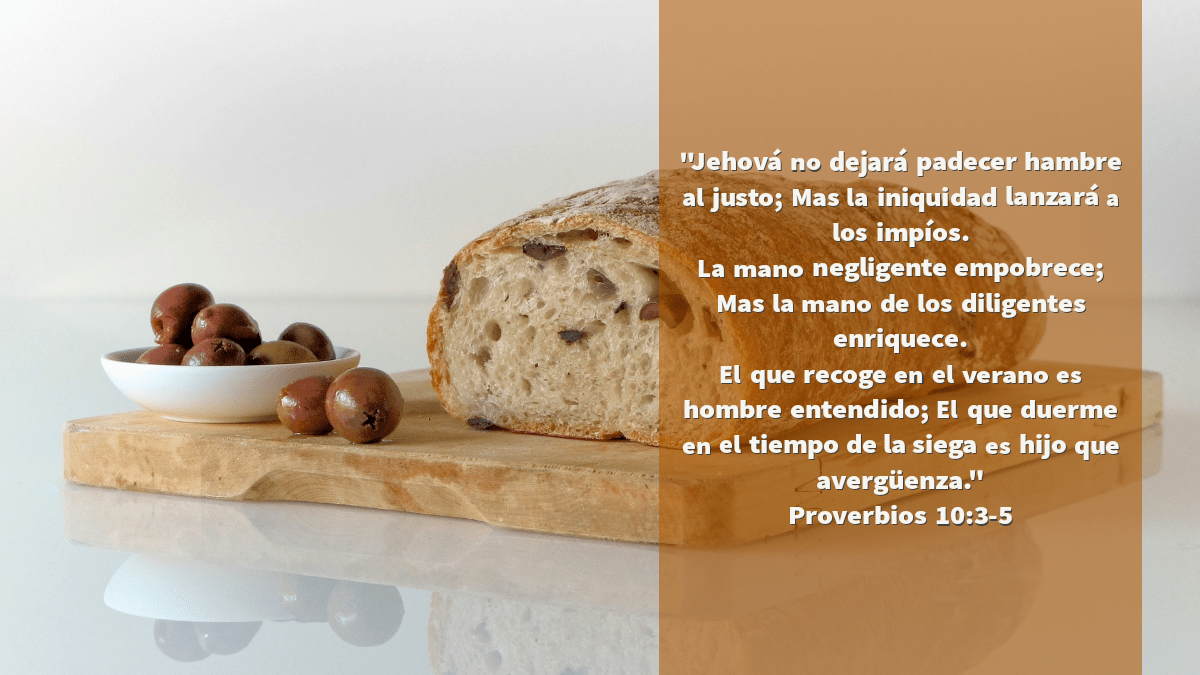 Dios siempre cuida de nosotros, pero también nos ha dado capacidad laboral e intelectual para aprovechar las oportunidades que Él nos brinda y usarlas para nuestra prosperidad. Seamos sabios y actuemos justamente y no nos faltará pan en nuestra mesa.