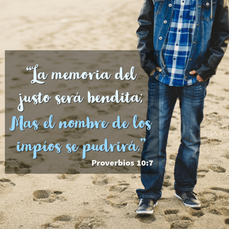 “La memoria del justo será bendita”, es decir, una persona que actúa justamente siempre será recordada por su buen comportamiento y su caminar recto ante Dios y los demás, “mas el nombre de los impíos se pudrirá” en el olvido o será recordado como un mal ejemplo hacia los demás por su comportamiento vergonzoso mientras vivió. ¿Cómo quisiera usted ser recordado?