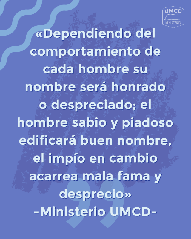«Dependiendo del comportamiento de cada hombre su nombre será honrado o despreciado; el hombre sabio y piadoso edificará buen nombre, el impío en cambio acarrea mala fama y desprecio»