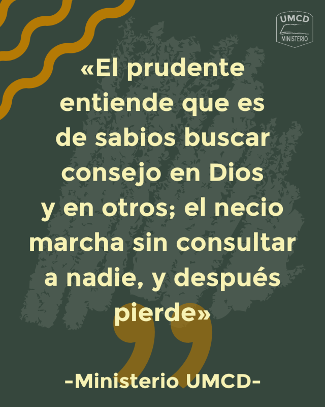 «El prudente entiende que es de sabios buscar consejo en Dios y en otros; el necio marcha sin consultar a nadie, y después pierde»