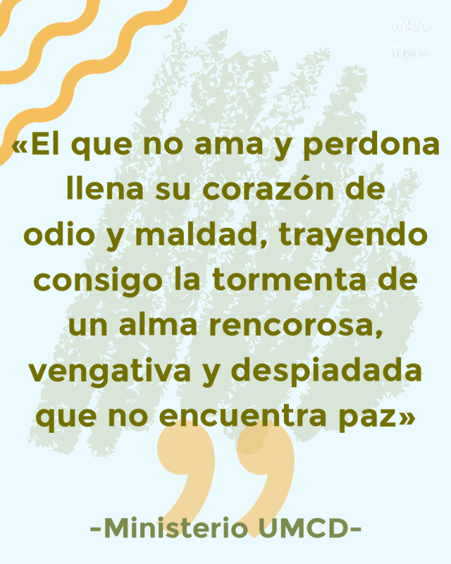 «El que no ama y perdona llena su corazón de odio y maldad, trayendo consigo la tormenta de un alma rencorosa, vengativa y despiadada que no encuentra paz»