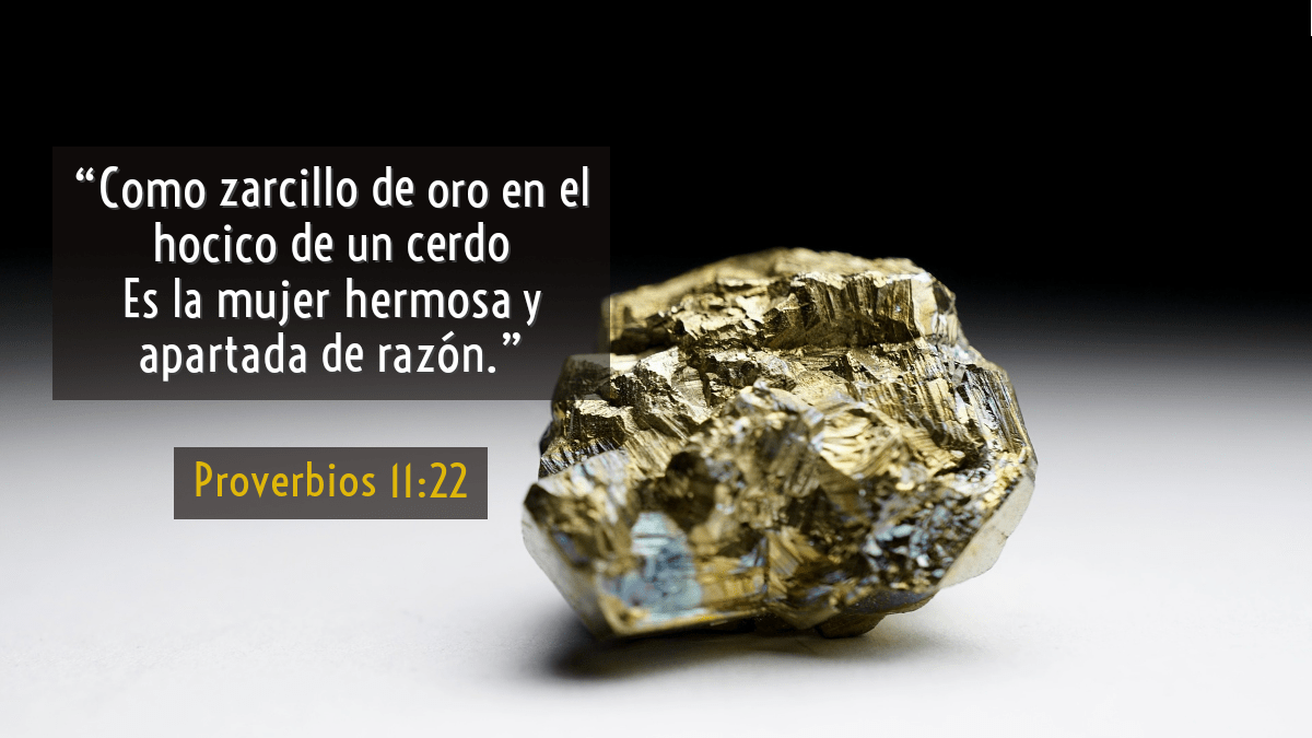 Así podemos ver que la belleza física o el atractivo de una persona, sea ésta un hombre o una mujer, no tiene real valor cuando no va acompañada de una capacidad de razonar o actuar apropiadamente en la vida. El autor de este versículo compara a la belleza física como un “zarcillo de oro” que es colocado en el hocico del cerdo, el cual, cuando come no valora lo que tiene, y mete su hocico en cualquier lugar sin razonamiento o valorización de lo que tiene en su nariz.