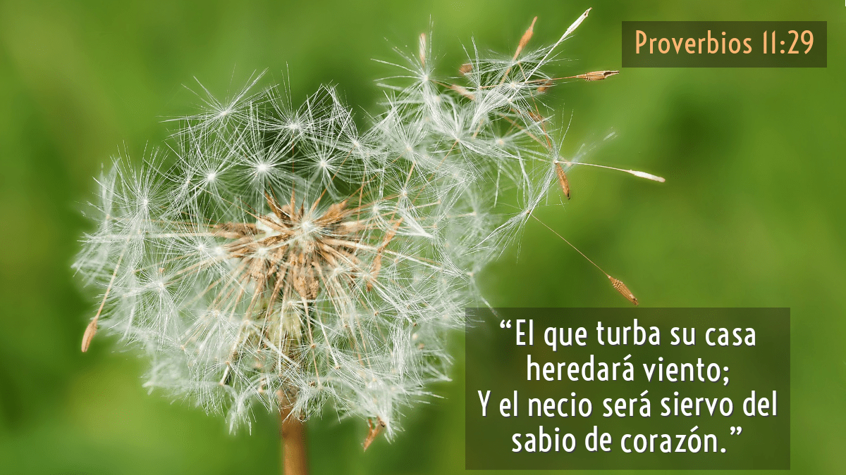 La Biblia nos dice que “el que turba su casa heredará viento” (v. 29a), haciendo referencia a que puede ser uno mismo quien introduce muchas veces la calamidad y la destrucción de su propia casa, cuando por voluntad propia, nosotros invitamos al tornado a que venga a nuestra casa para que lo trastorne.
