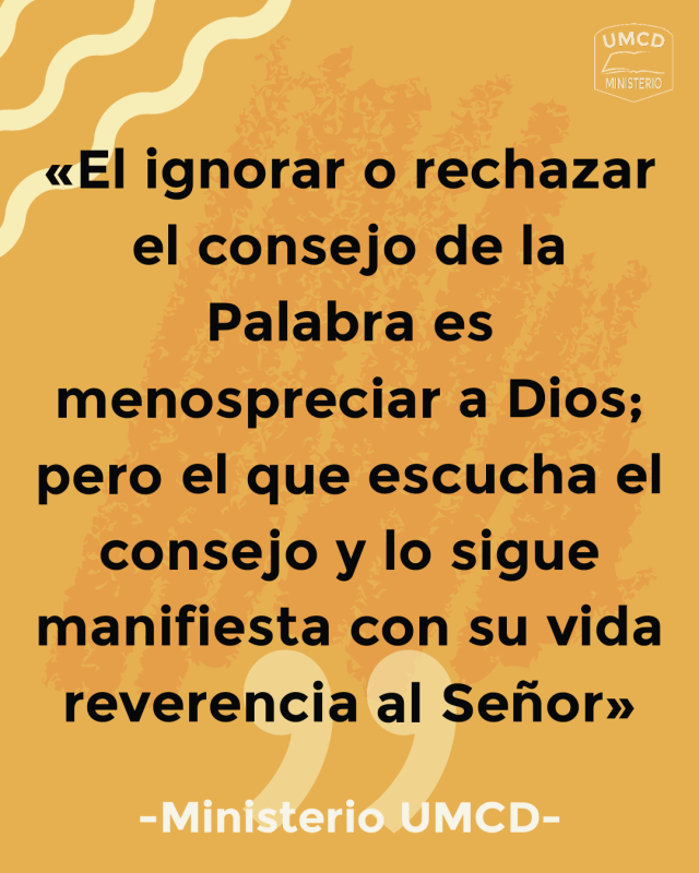 «El ignorar o rechazar el consejo de la Palabra es menospreciar a Dios; pero el que escucha el consejo y lo sigue manifiesta con su vida reverencia al Señor»