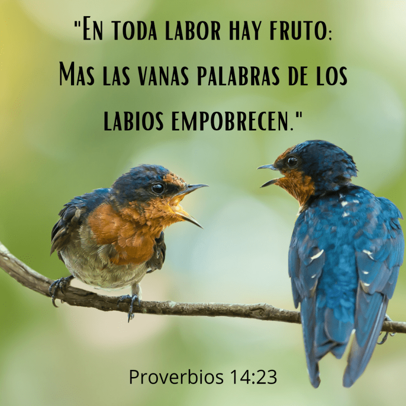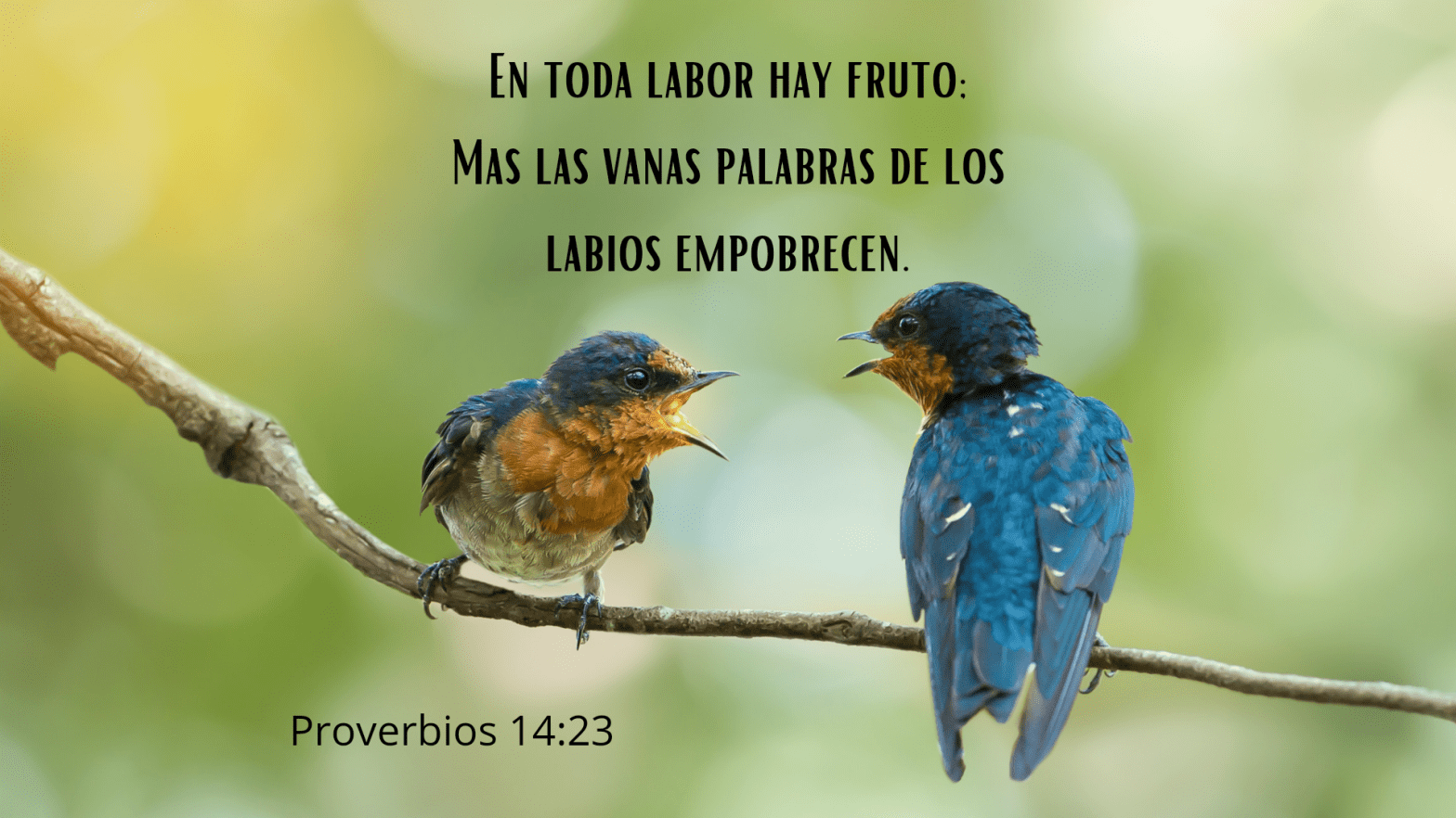 Esta ilustración nos da una idea de lo poco útil que representan las muchas palabras cuando ellas no van acompañadas de acciones. Es muy interesante ver cómo la Palabra de Dios nos dice que “en toda labor hay fruto”, pero no en hablar mucho, éstas más bien “empobrecen” (v. 23). Cuando crecía escuchaba un dicho que decía: “Menos palabras y más acción”.