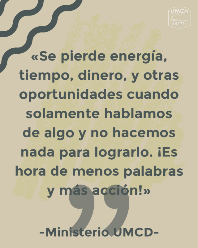 «Se pierde energía, tiempo, dinero, y otras oportunidades cuando solamente hablamos de algo y no hacemos nada para lograrlo. ¡Es hora de menos palabras y más acción!»